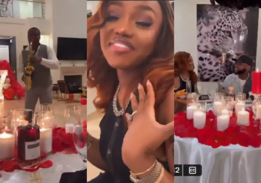In the video, the couple sits at a lovely table. Then, Davido takes Chioma to another part of the venue, revealing many gifts he had arranged for her.
