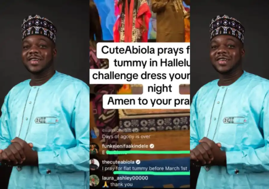 Popular content creator and comedian AbdulGafar Abiola, known as Cute Abiola, has caused a stir online with his prayer point during the well-known Hallelujah Challenge that has taken social media by storm.