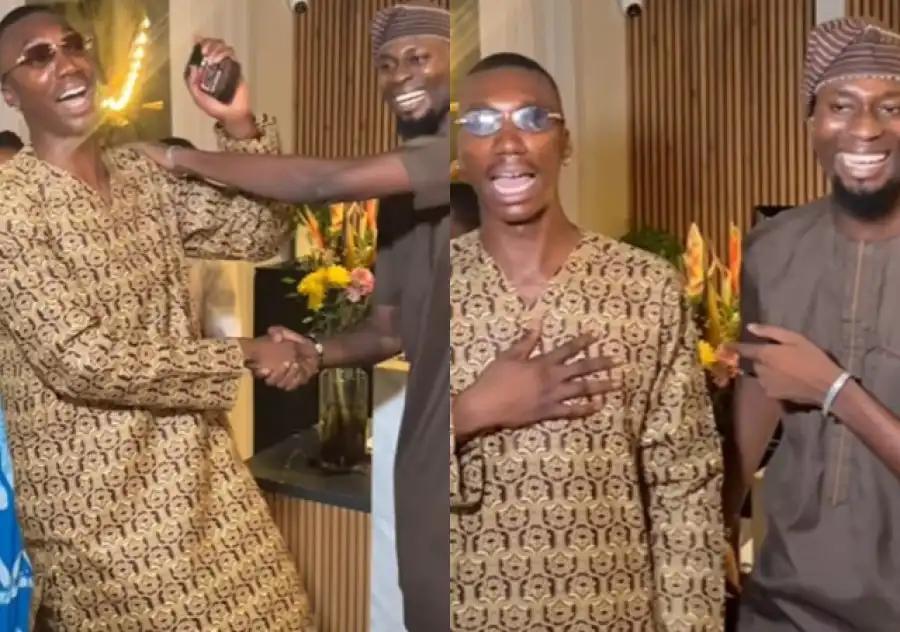 “Above the law” -Moment comedian, Layi Wasabi meets a man taller than him at an event