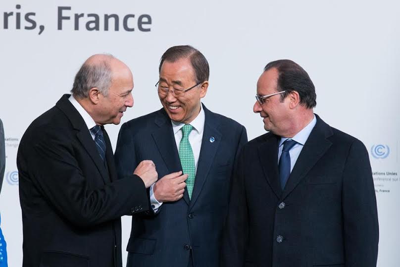 President Buhari pictured above being welcomed by President Francoise Hollande of France to the Opening of the United Nations Climate Change Conference in Paris, France today November 30th.