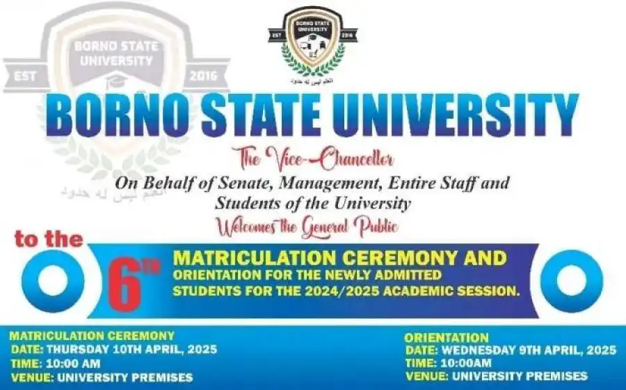 This is to inform all Principal Officers, Deans, Directors, Heads of Department, Heads of Unit, all Staff and Students that the 6th Matriculation Ceremony & General orientation for the Newly Admitted Students for the 2024/2025 Academic Session is scheduled to hold as follows: