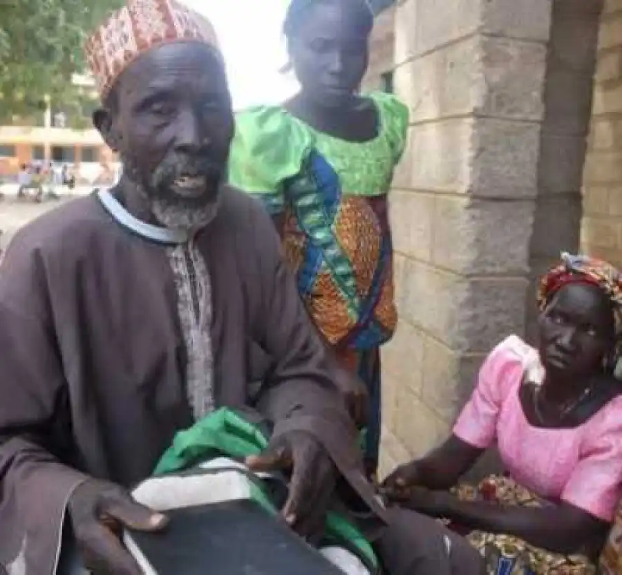 The old man pictured below is a retired schoolteacher who along with his wife, Sarah, in the pink blouse, sitting on the floor, searched for a child for many years. Few years ago, they were blessed with one but sadly lost the child during an attack by Boko Haram on their community.