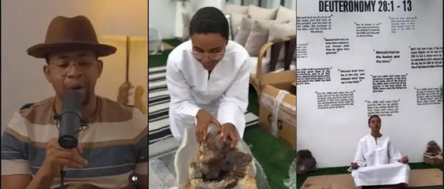“That is not Christianity, that is new age practice, witchcraft, demonic operation or cultism. That is syncretism, when people bring elements from different religions to amalgamate them together and make whatever they want out of it, that is Nancy Isime, she’s a Nigerian celebrity. She’s Christian and in the background you can see she has some scriptures pasted on the walls of her temple or whatever and then you can see her unpacking something, an amethyst, which is a stone of spirituality. It is often used in new age practices in witchcraft and you can see her putting that at the corners of her temple and then she ends with the yoga posture. There is no difference between her and people who are Christian and are in Illuminati. There is no difference between this and people who are Christians and are in secret cults. There is no difference between her and people who are Christians and are witches. You cannot add Jesus to any other thing. If it’s not Jesus all by itself, it is not Jesus. You don’t bring elements of spirituality from other religions.”