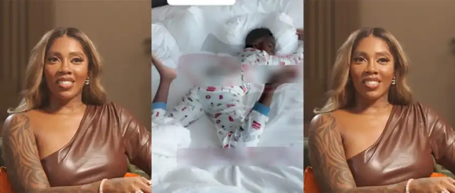 Tiwa Savage Shares Son’s Quirky Sleeping Position, Fans React