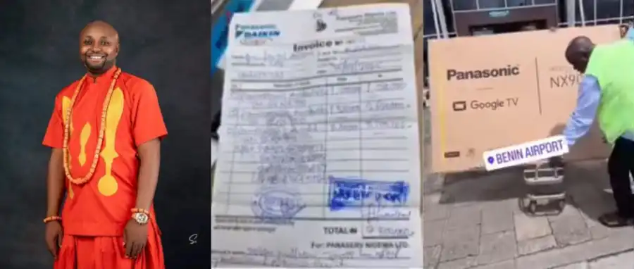 In a new video posted on his official page, Israel proudly displayed a massive flat-screen TV that he bought in Lagos and had delivered to his home in Benin.