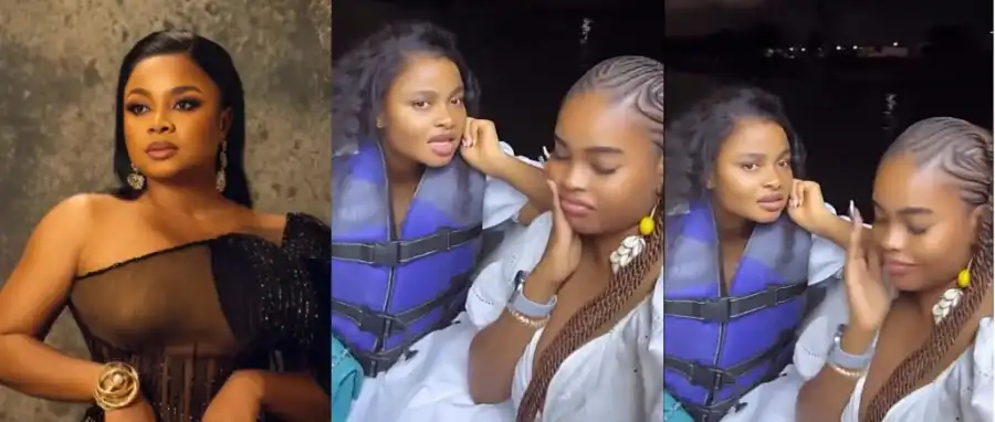 Actress Bimbo Ademoye playfully chided her younger sister, Eyiyemi Afolayan, after catching her attempting some cheeky dance moves by shaking her chest during a boat cruise.