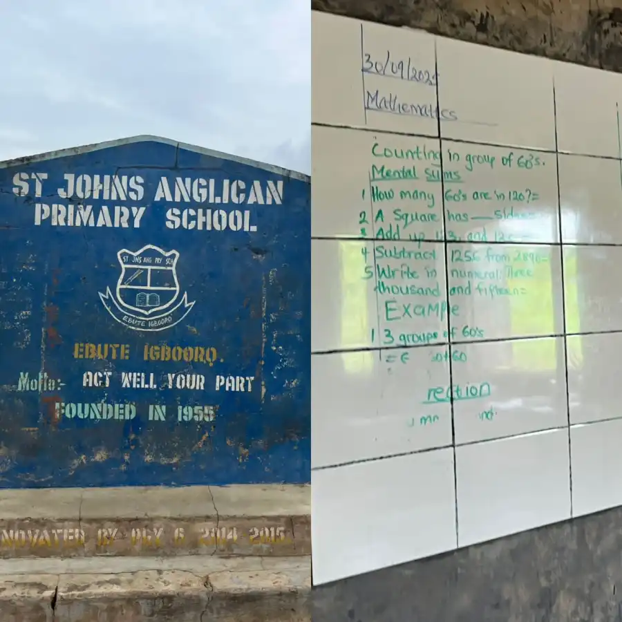 Forty pieces of ceramic white tiles arranged systematically serve as a maker board for students of the St Johns Anglican Primary School, Ebute-Igbooro, an agrarian community in the Yewa North Local Government area of Ogun State.