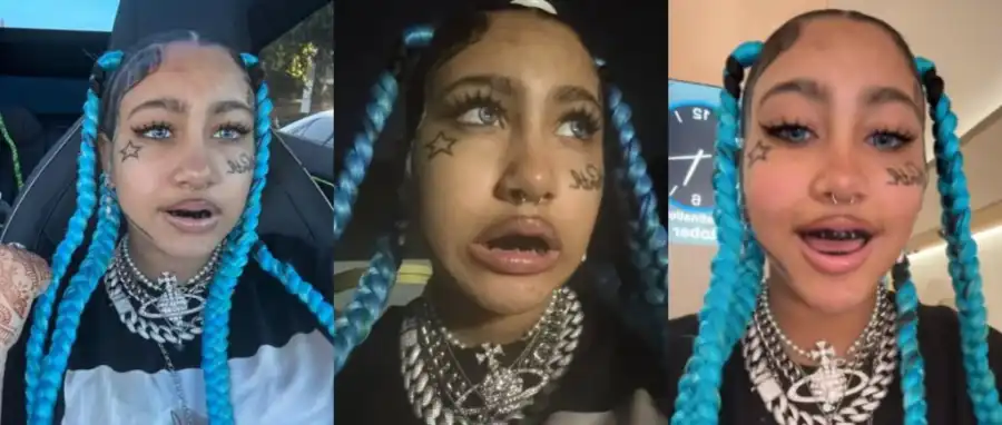 In recent videos shared on the TikTok account she co-runs with her mother, North showed off a strikingly mature style featuring fake tattoos, grillz, blue braids, and a nose ring. She also wore bright blue contact lenses and had mock ink designs drawn across her face, including a small star under one eye and script lettering on her cheek.