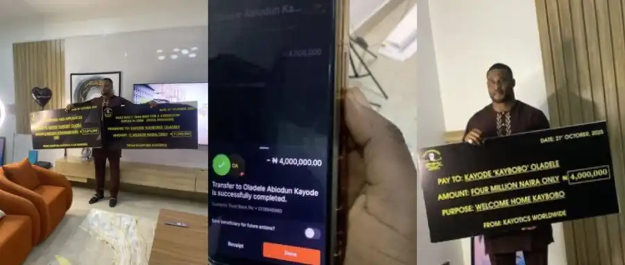 Big Brother Naija reality star, Kaybobo, has received a grand surprise from his fans, who gifted him a fully furnished duplex in Lekki, ₦4 million in cash, an iPhone 17, and several other luxury items.