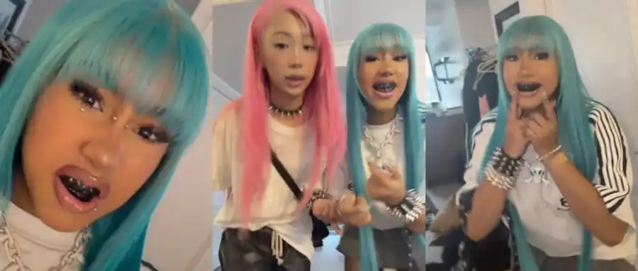 In videos shared on the “Kim and North” TikTok account, North appeared with a bridge piercing, black grills, and turquoise-colored hair. She also showcased a custom diamond-encrusted skull necklace gifted to her by her mother for Christmas.