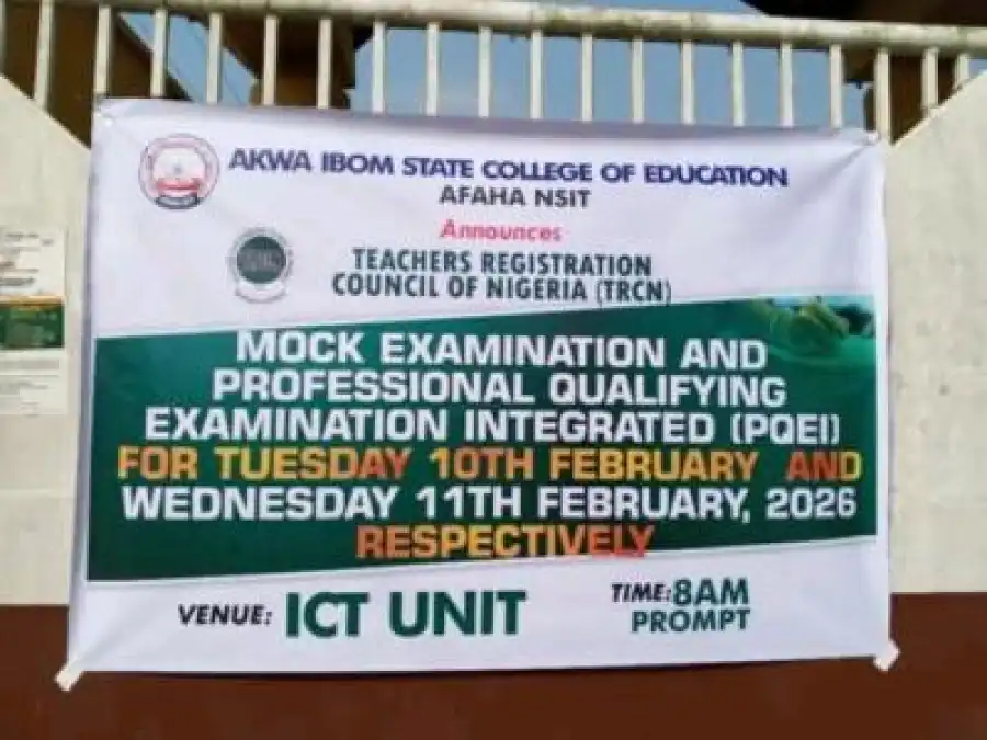 The Akwa Ibom State College of Education (AKSCOE), Afaha Nsit, has announced the schedule for the Teachers Registration Council of Nigeria (TRCN) Mock Examination and the Professional Qualifying Examination Integrated (PQEI).