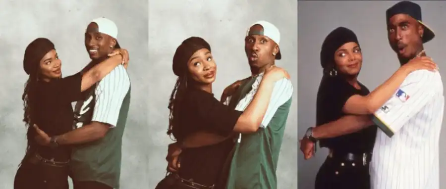 The original picture, featuring 2Pac and Janet Jackson, is from the 1993 film Poetic Justice.