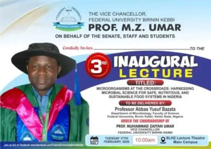 This is to inform the University community and the general public that the 3rd Inaugural Lecture of the Federal University Birnin Kebbi has been rescheduled to 10:00 a.m. prompt.