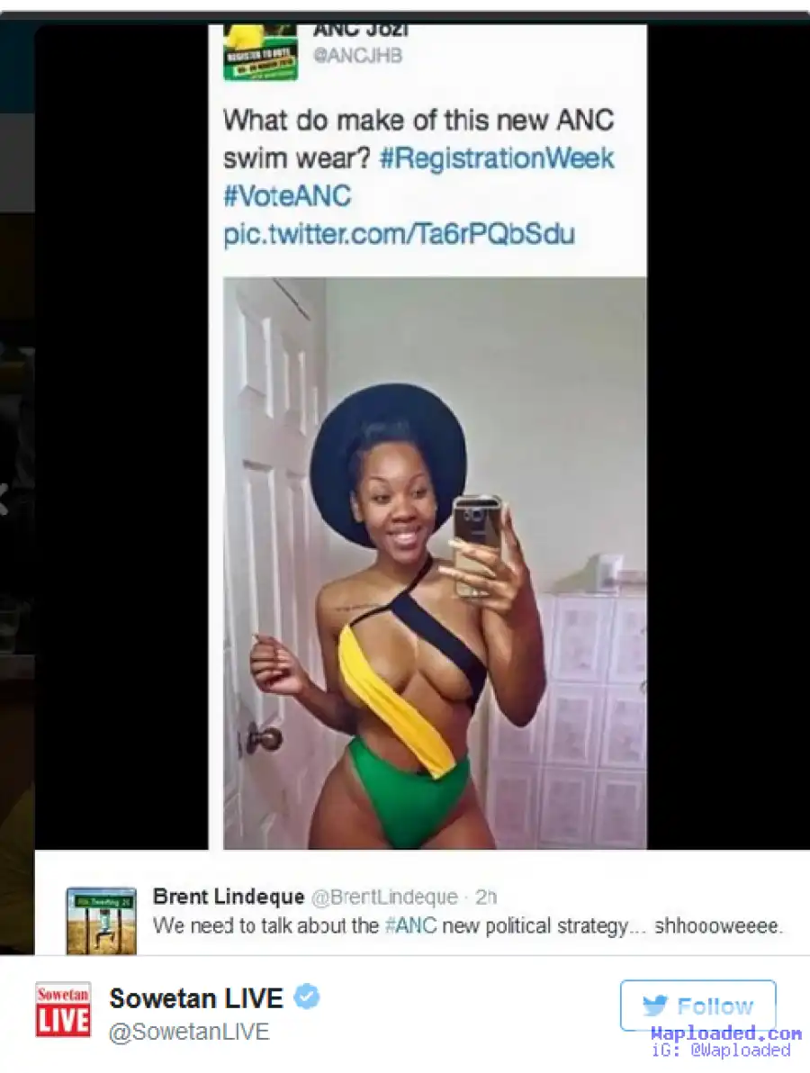 The South African ruling party, African National Congress (ANC) shared this sexy image of a woman wearing a swimsuit on its twitter account.