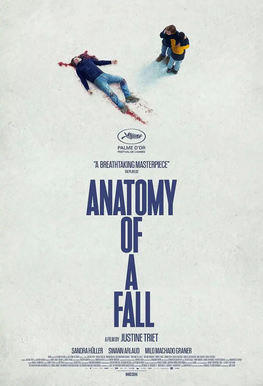 For the past year, Sandra, her husband Samuel, and their eleven-year-old son Daniel have lived a secluded life in a remote town in the French Alps. When Samuel is found dead in the snow below their chalet, the police question whether he was murdered or committed suicide. Samuel's suspicious death is presumed murder, and Sandra becomes the main suspect. What follows is not just an investigation into the circumstances of Samuel's death but an unsettling psychological journey into the depths of Sandra and Samuel's conflicted relationship.