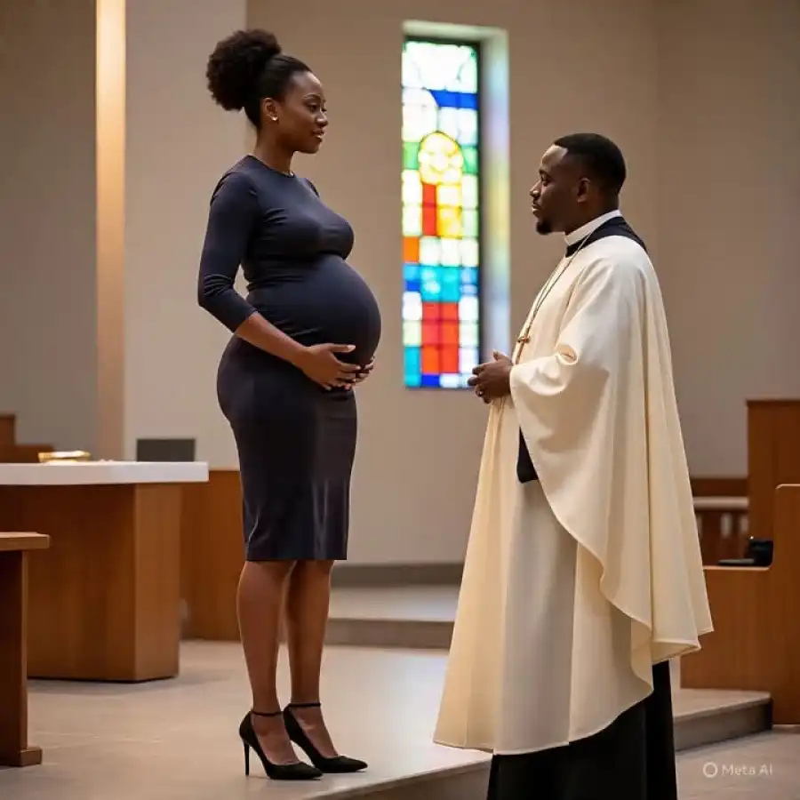 Brenda boarded a bus from Enugu and travelled to Abuja two days ahead of the ordination date. Her baby bump is big because the pregnancy has already clocked eight months. In fact, she is close to delivering the child. Emmanuel had no idea that his girlfriend planned to come to the ordination venue to cause trouble.